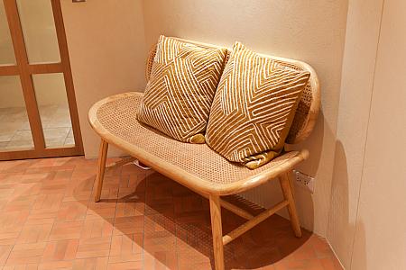 カウンターで予約を告げるとラタンの椅子に案内されました。ここは