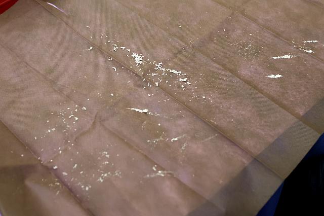 ナビの足裏とナイフ1本(これにも驚き!多くの道具は不要みたい)をササッと消毒した先生は、装備同様軽やかに足裏の皮を削り取っていきます。「触られているな~」という感覚です。するとどうでしょう。お手入れしたはずの足裏からはみるみるうちに古い角質が剥がれ落ちていきます。店のスタッフさんからは「かつお節みたいねー!」って。大雪じゃなくてよかったな、とナビも笑っちゃいました。