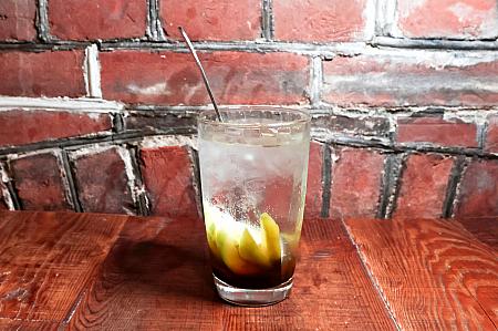 梅釀青芒果氣泡飲(梅シロップ漬け青マンゴーのスパークリングドリンク)/150元青梅のペーストとシロップ漬けの青芒果(青マンゴー)を炭酸水で割った一杯は、きゅっと爽やかな甘酸っぱさが魅力。台湾ではかき氷のトッピングとして親しまれてきた青マンゴーを、ドリンクに仕立てる発想が光ります。どこか懐かしく、それでいて新鮮。グラスの底に沈んだ青梅ペーストをしっかり混ぜて召し上がれ♪