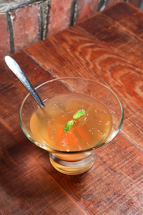 檸檬愛玉(レモン愛玉ゼリー) 60元。独特の食感がクセになる愛玉ゼリーには、サトウキビシロップとレモン汁がかかっています。愛玉ゼリーをレストランで食べられるのもうれしい。