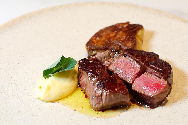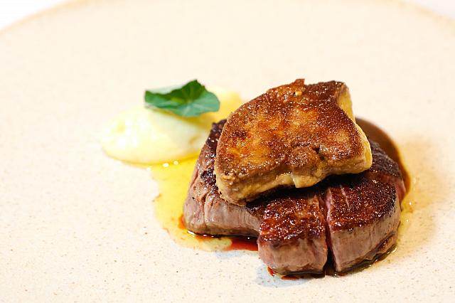 追加でオーダーしたのはフランス産のフォアグラ。やわらかくて濃厚な味わいは、脂肪分が少なくあっさりとした上品なヒレ肉との相性抜群!いっしょに食べれば旨さ増しましです。