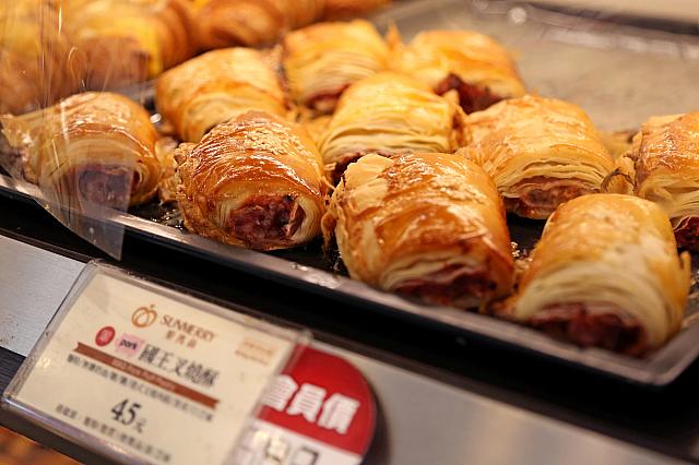 もう一つの人気商品が「国王叉焼酥(王様のチャーシューパイ)」(45元)で、甘酒の酒粕で豚肉を味付けた餡を包んだパイです。「SUNMERRY聖瑪莉」のパン職人が本場香港まで修行に行って生まれた本格的な味。香港の飲茶でおなじみのメニューですよね。ただ、叉焼という名前だけど、日本のチャーシューとは全然違いますよ~。