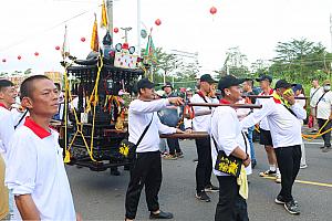 その後3日間に渡り、神輿に担がれた王爺は村中を練り歩き(遶境)、悪霊退治。屏東迎王で唯一、3エリア(南州・林邊・崁頂)を跨いでくまなく巡回するのです。