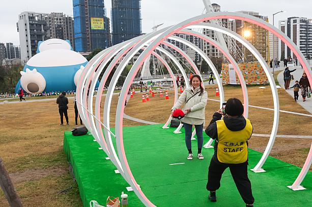 ナビはまず、サブ会場の「光の遊技場(光的遊戲場)」へ向かいました。桃園空港MRT「桃園體育園區」駅を下りると、会場はすぐそこです。周辺5つのスポットが異なるテーマで飾り付け。台湾楽天の本拠地、楽天桃園野球場(樂天桃園棒球場)も会場の1つなんですよ!