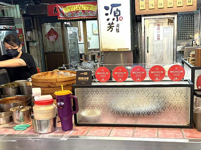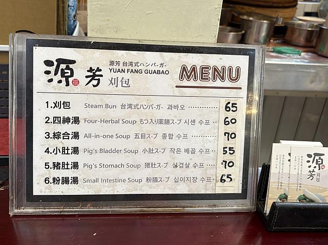 台湾式バーガー刈包(グアバオ)のお店「源芳刈包(ユエンファングアバオ)」は1955年創業の老舗で、いつも行列ができている人気店です。2020年から5年連続でビブグルマンが推薦していて、実力は折り紙付き!刈包には滋養漢方スープ「四神湯」と一緒に食べるのがおすすめです。