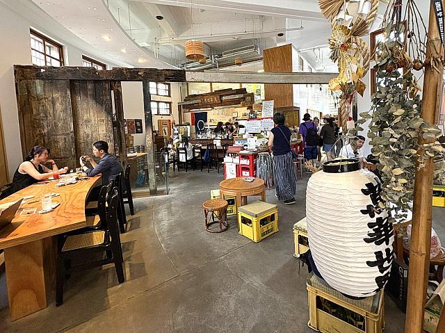 U字型を体感できる中庭のスペースは、絶好の映えスポットとして若者に人気でしたが、さらに、お昼からお酒や軽食を楽しめる居酒屋「萬華世界下午酒場」がオープンしてからはお酒好きが集まる活気のある場所になってきています。