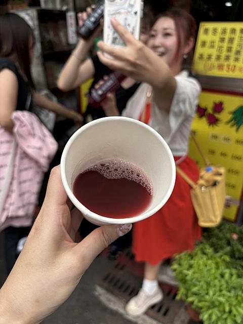ナビは、美容によいという「洛神花茶」を試飲。酸味があるけれど、飲みやすくておすすめです♪