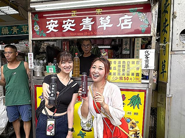 医療が発達する以前は、病に侵されるとまず龍山寺でお参りをし、そこで渡される赤いおみくじを持って青草巷へ立ち寄り、薬草を処方してもらっていました。今でも薬草を煎じて飲む人もいますが、ドリンクスタンドでハーブ茶を手軽に味わうこともできます。