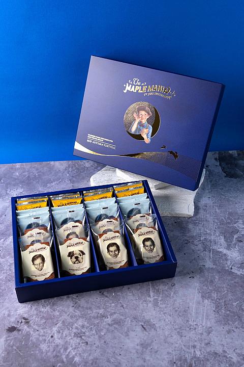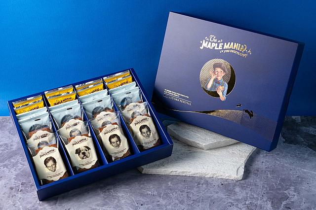 ●「The MAPLE MANIA楓糖男孩」中秋限定綜合24入禮盒1,480元/箱内容:メープルバタークッキー8枚、メープルフィナンシェ8枚、メープルソルティナッツクッキー8枚