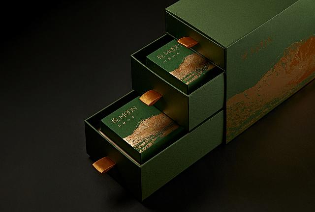 ●悅 Moon月藏山海1,680元/箱内容:廣式月餅4個、ティーバッグ2種、龍眼蜂蜜1瓶、ヒノキ製スマホスタンド1個