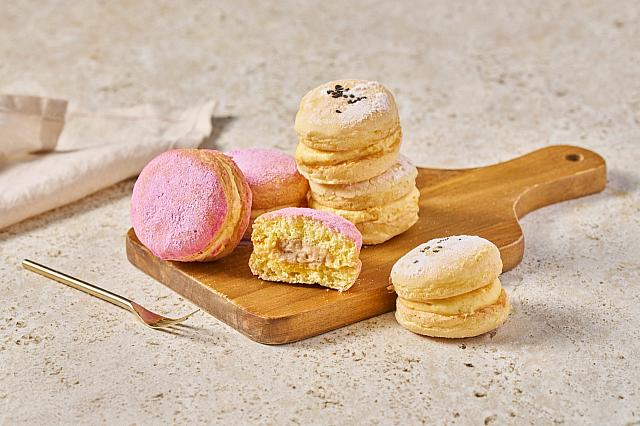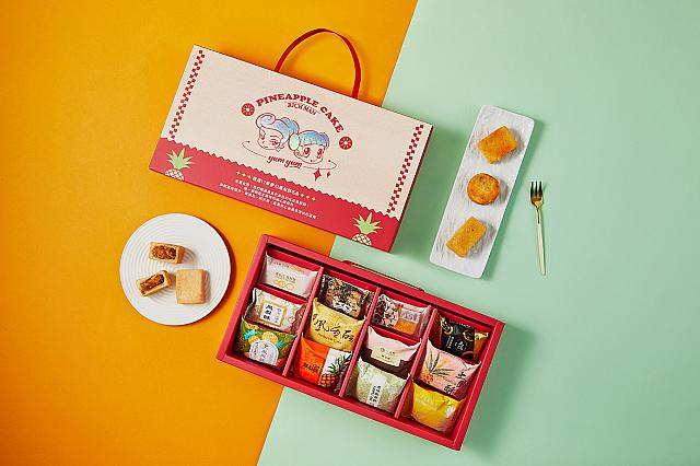 セットとなるお菓子のラインナップは……2025年の新作・台湾産のタロイモを使用した「馬卡龍芋頭酥」、小麦粉の代わりに蓬莱米粉を使った「福米卷」、2024年に12万個を売り上げた大ヒット商品「馬卡龍蛋黃酥」、20万個を売り上げる定番の人気商品「台灣Q餅」、中秋節の時期だけの販売で屏東・四重溪温泉の溫泉紅仁鴨蛋黃(塩漬けタマゴ)を使った「四重溪溫泉金沙蛋黃酥」、ジャスミンが香る麦芽餡入り「吞日太陽餅茉茶香」の中華菓子に、キャラメル香る「夏威夷豆塔」、オランダ・ベルギー産バターを使って熟成焼きした「費南雪(フィナンシェ)」、南投産烏龍茶葉を使った「蜜香烏龍曲奇(クッキー)」などの洋菓子。