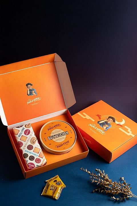 ●「The MAPLE MANIA楓糖男孩」中秋限定年輪綜合禮盒1,350元/箱内容:メープルバームクーヘン1つ、メープルバタークッキー9枚