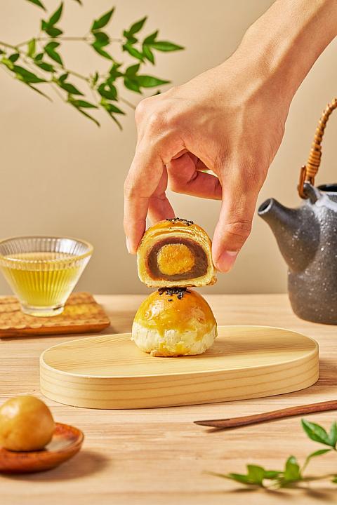 生地は低温でじっくり熟成させ、精密な焼き加減で、軽やかでサクサクなのに崩れにくい理想の層を実現。餡は黄金比で配合され、甘さ・油分・香りのバランスが絶妙です。口に入れるとまず皮のパリッとした音が響き、次に餡の香りがぎゅっと広がります。丸かじりでもカットしても、美しく整った形のままです!