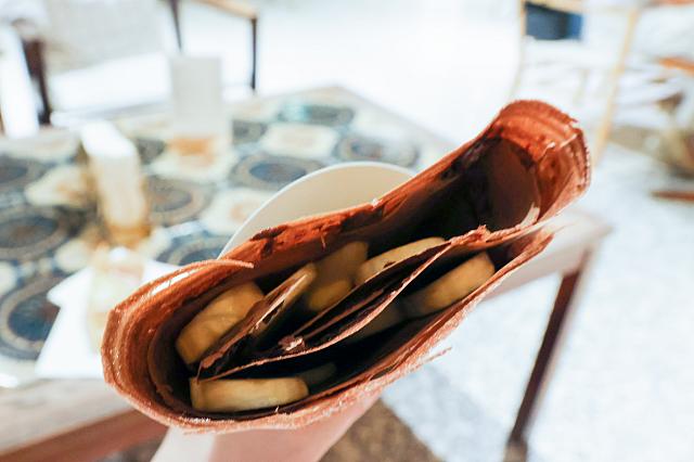 ベーシックなのならコレでしょう!日本製の三温糖と有塩バターを使ったほのかな甘みと塩味が感じられる甘じょっぱな味わいです。クレープの皮はフランス風の柔らか+台湾風のパリパリの中間といった感じでした。