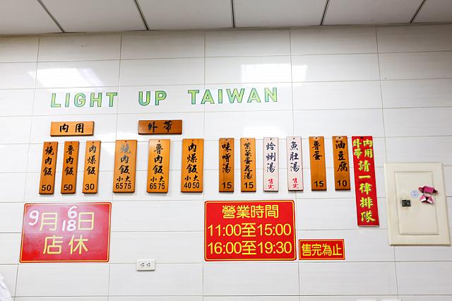 本日はもちろん看板メニューの「焼肉飯」をオーダー。オーダーシートはないので指差しやメモで注文してくださいね。ちなみに「魯肉飯」はド~ンと大きな角煮が、「肉燥飯」はブツ切りバラ肉がのっています。台北で言う「魯肉飯」が食べたいのなら「肉燥飯」を選びましょう。