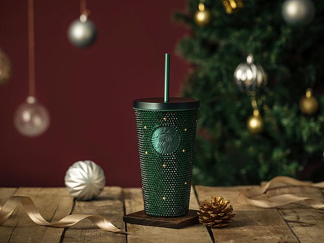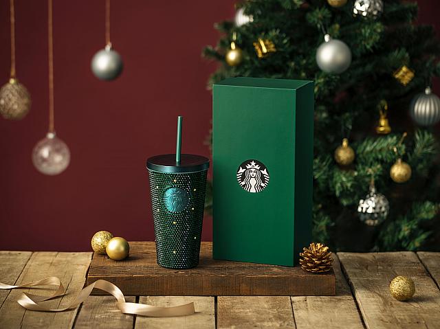 「星芒璀璨Bling不鏽鋼TOGO冷水杯」は、クリスマスツリーを思わせるコールドカップタンブラー。緑色のクリスタルガラスにゴールドがちりばめられた豪華なデザインで、専用のギフトボックスも付いてきます。