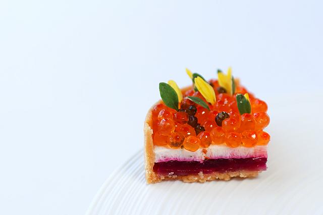 ③鱒魚子煙燻甜菜根塔