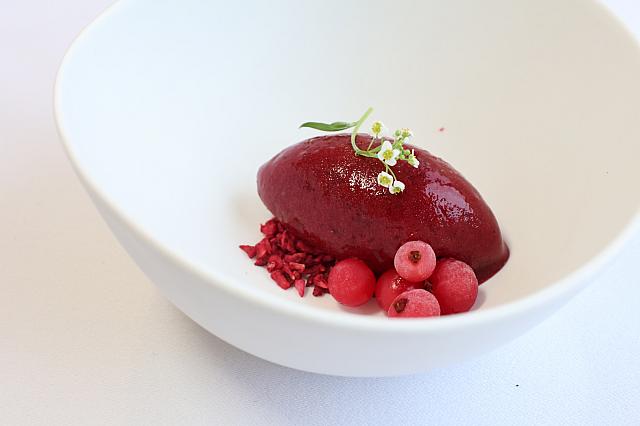 見た目もかわいい、ベリー尽くしのジェラートです。酸味と甘みのバランスが心地よく、食後の口直しにもぴったりな爽やかなプレデザート。