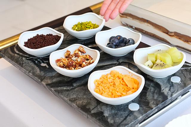ワゴンで運ばれてきて、ティラミスの量やトッピングを選べる、ワクワクする仕掛けがあるからってのも大きいかも。欲張りナビはもちろんトッピング「全部のせ」で♪