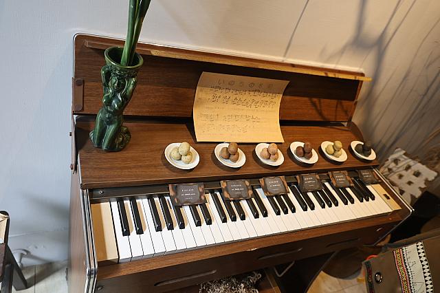 懐かしい佇まいのオルガンは、お菓子の展示用になっていました!