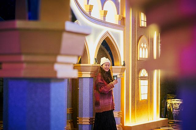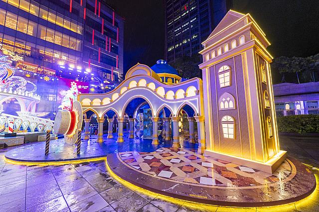 「台北統一時代百貨」2階広場には、ヴェネツィアの象徴「リアルト橋」や運河、船頭帽などをモチーフにしたオブジェが登場。クリスマスらしくキラキラ輝く幻想的な空間を楽しめます。