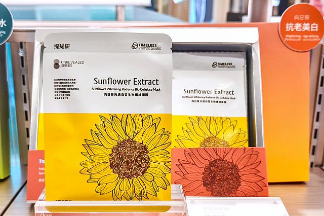 ヒマワリのイラストがかわいい「向日葵光透白皙生物纖維面膜」もバイオファイバーマスクです。スイス産ヒマワリの芽のエッセンスで紫外線による老化を防ぐだけでなく、アルブチン配合でくすみも改善。輝くような白い美肌に!