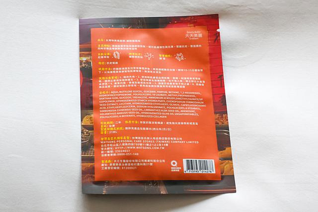 顔にシートを載せると鼻の穴からダイレクトに鹹酥雞の匂いが。いい匂いなのに、匂いの出どころを辿るとちと萎える……。なんだかピリピリしてきたのは気持ちの問題でしょうか?チリペッパーかけたっけ?いやいや、アタクシ不辣(辛くない)派だし、そもそも鹹酥雞は食べてない!食べ物としての鹹酥雞はおすすめだけどパックは……。ちなみに効果はアンチエイジング!