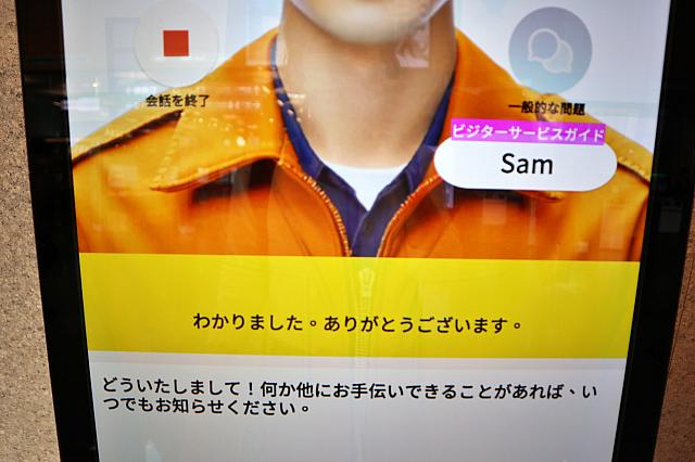 SAMは4ヵ国後が話せるすごい奴!クァドリンガルなんです。まずは中国語が苦手なナビは、「日本語」ボタンをタップして日本語で話を聞いてもらうことに。続いて「会話開始」をタップします。 |