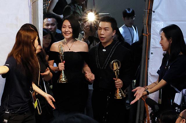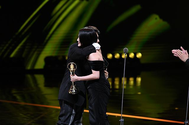 楊謹華と謝盈萱の抱擁シーン。『影后』から「主演女優賞」にノミネートされていた謝盈萱について、「盈萱は私の心の女神です。あなたがいなければ、この賞は受賞できなかった。あなたが演じるシーンは、毎回こっそりチェックしていたわ」と、尊敬の念を語っていました。受賞後のインタビューの場では、そんな二人が抱擁する場面もあり、切磋琢磨してきた女優同士の絆を感じました。