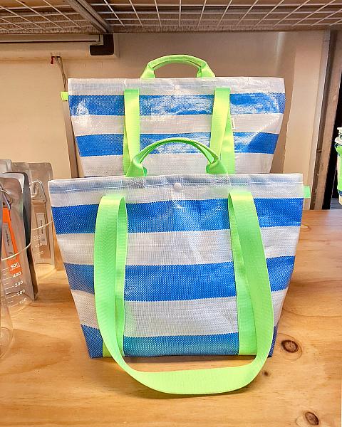 トートバッグは持ち手の紐が蛍光緑でパキっとした色使いがナビ好み♡持ち手が2つあって肩に掛けたり手持ちできたりするのも便利なんです!