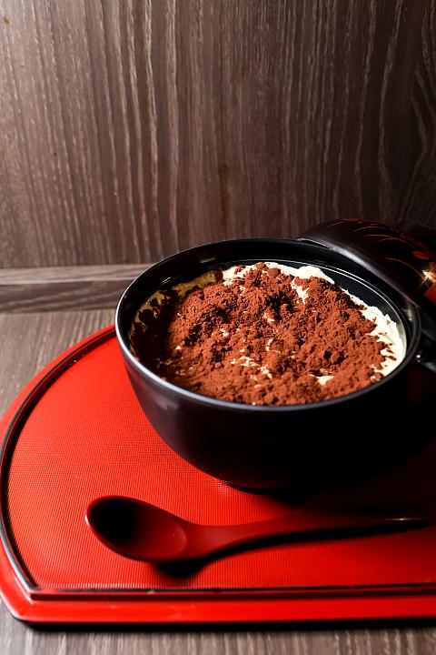 和風なお椀に入ったティラミスは外さないおいしさ。量もたっぷりだから2人でシェアしてちょうどいいかも?