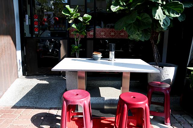 暑すぎず心地よいお天気だったので、ナビたちは外席をチョイス。道端に置かれたテーブル席ですが、台湾っぽい空気を感じられるから大好き♡真夏は冷房の効いた店内席一択か⁉