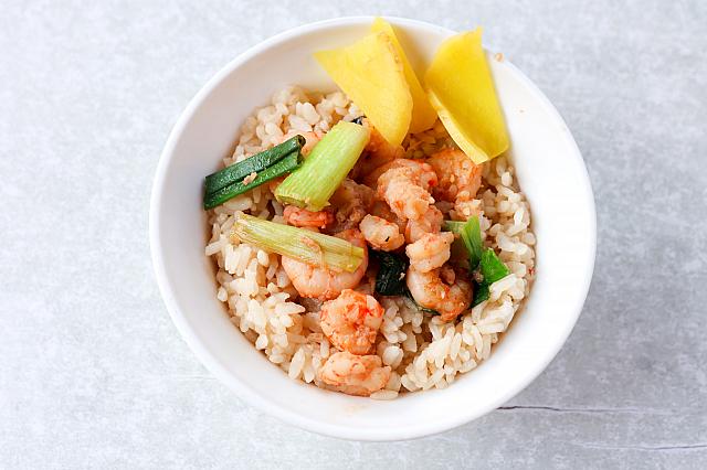 やっぱりこれ!定番のえび飯(蝦仁飯)小70元。ごはんにもエビの風味が染み込んで食欲をそそります。思ったよりねっとりとした感じ。プリプリのエビがいっぱいです!つけ合わせのたくあんも箸休めによき~♪