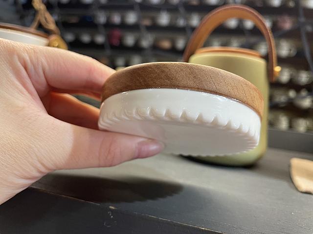 蓋の部分は茶漉しの役割をし、ギザギザの隙間からお茶を注ぐ形になっています |