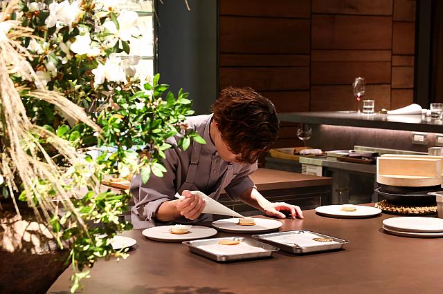 四季折々の素材と伝統的な和食の技法、さらにこれまで培ってきたフレンチやイタリアンの手法を取り入れた「新日本料理」を提案しています。席に着くと本日のメニューが用意されていました。既成概念に捕らわれない自由は発想のシェフおまかせ季節のコース料理全10品です。台北でも注目を集めるイノベーティブな食を体験できます。 |
