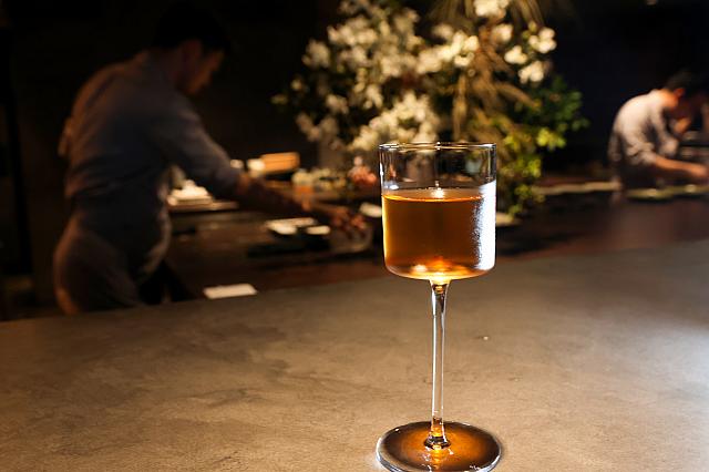 料理をさらに引き立てるのがペアリング。アルコール(5~7種)とノンアルコール(5~6種)が用意されています。今回はノンアル5種をオーダー。料理の苦味がまろやかな甘さに変わり、口の中をすっきりと整えてくれます。 |