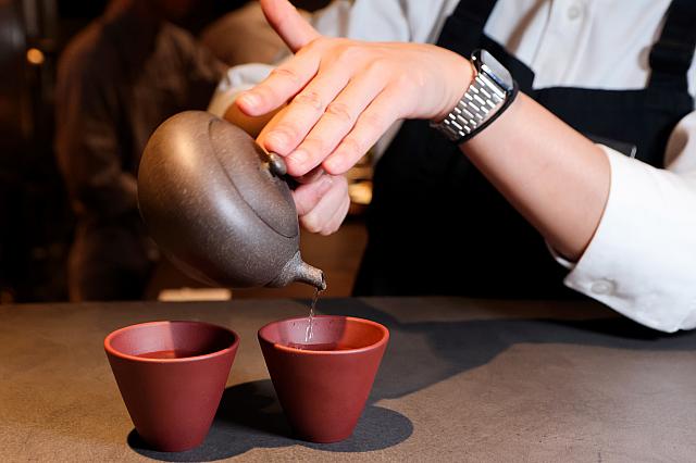サーブされるお茶は奈良の井ノ倉ファームの緑茶やほうじ茶、またはハーブティーなど。余韻に浸りながら味わいましょう。 |
