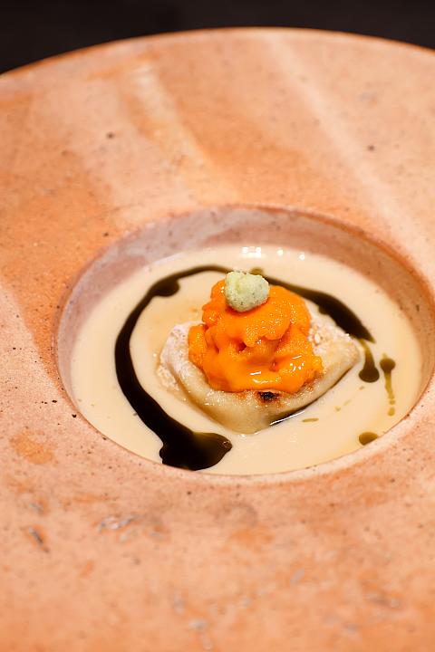 [焼物]胡麻豆腐 雲丹 根セロリ |