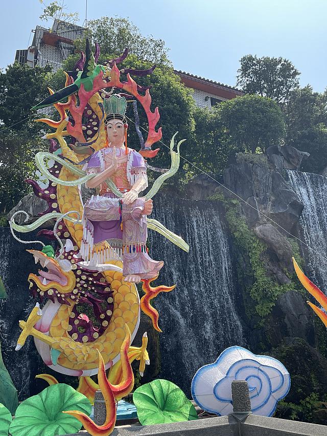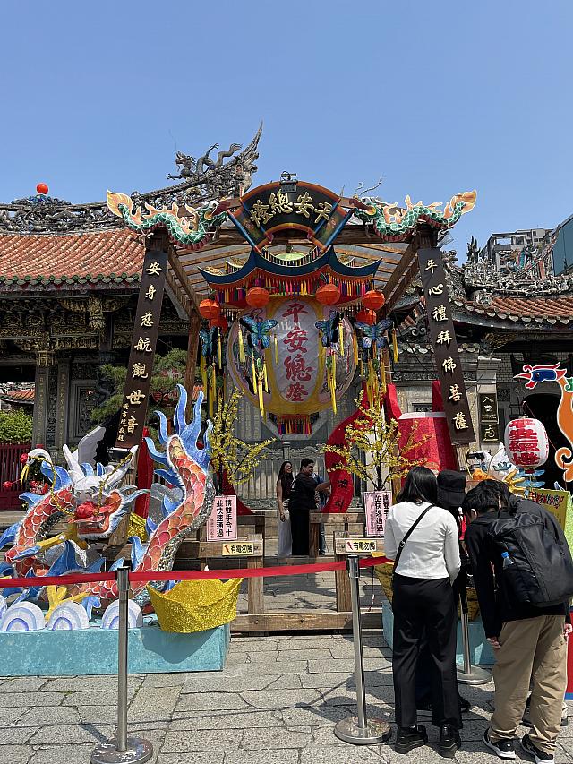 この日はいつもと少し違う華やかな雰囲気。ちょうど「艋舺龍山寺花燈」の期間(〜4/6)で、色とりどりのランタンが境内を彩っていました。伝統的なお寺に幻想的な灯りが加わって、いつにも増して見応えがあります。