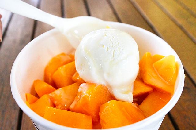 カットマンゴーにバニラアイスをON