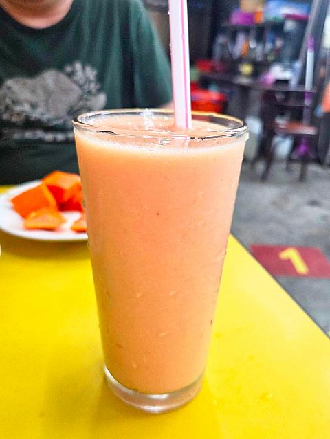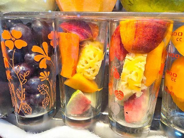 カットフルーツもいいですが、もっと手軽に台湾フルーツを楽しむなら、やっぱりフレッシュジュースですよね。というわけで、ミックスジュース「綜合水果汁」60元を注文!