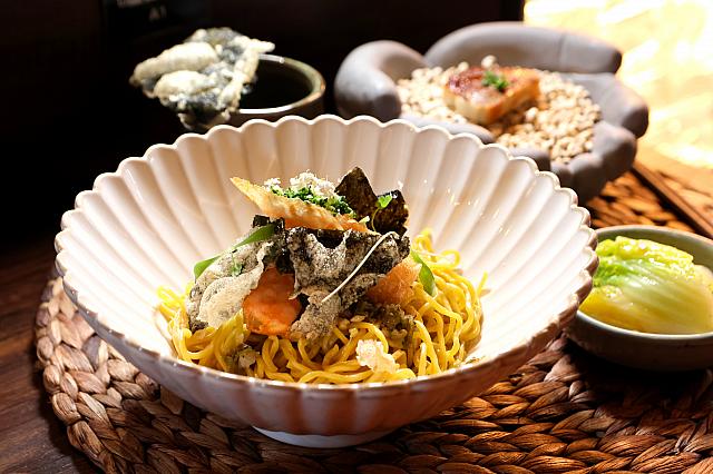 ちなみに乾麺(汁なし麺)は130元をプラスすると、「山東蔥餅佐焦糖雞肝慕斯」と「上湯娃娃菜」、「鰹魚海菜湯」がつくセットにすることができます。